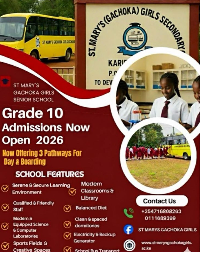 Welcome to St. Mary’s Gachoka Girls Senior School – Nurturing Grace, Intellect, and Ambition in Every Young Woman At St. Mary’s Gachoka Girls Senior School in Gachoka, Embu County, we are a distinguished private day and boarding institution dedicated exclusively to the empowerment of girls. Here, we cultivate not only academic excellence but also the poise, resilience, and confidence that define tomorrow’s leaders. We hold immense pride in our full accreditation by the Ministry of Education to deliver the Competency-Based Education (CBE) curriculum. This innovative approach emphasizes practical, skill-building learning, preparing our students for university, careers, and lifelong success with a focus on real-world application. Our state-of-the-art facilities elevate every aspect of school life: modern science and home science laboratories foster curiosity and innovation; expansive sports fields and brand-new recreational areas encourage teamwork and vitality; and our sparkling swimming pool adds a touch of serenity and skill-building. Beyond the classroom, our vibrant extracurricular program includes music ensembles that inspire creativity, modeling workshops that build self-assurance, and a range of clubs that spark passion and purpose. We also prioritize holistic well-being with nutritious, well-balanced meals prepared daily—fueling young minds and bodies for peak performance. Whether as a day student or boarder, your daughter will thrive in our safe, supportive environment designed to unlock her full potential. We invite you to explore our admissions, programs, and vibrant community. Contact us today—let’s embark on this elegant journey together.